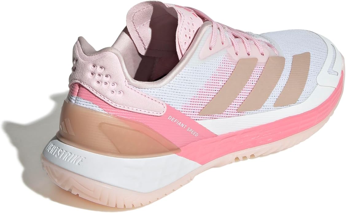 Think fast, move fast. These adidas tennis shoes give you full mobility on the court. A Lightstrike midsole delivers responsive cushioning and next-level speed combined with a low-to-the-ground feel. The mesh upper, working in harmony with a moulded sockliner and TPU at the heel, keeps the foot secure yet ventilated. This product features at least 20% recycled materials. By reusing materials that have already been created, we help to reduce waste and our reliance on finite resources and reduce the footprint of the products we make.