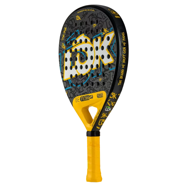 The Be Flow 2 is designed to make your start in padel fun, comfortable, and fluid. Its round shape with a centered sweet spot makes every shot easier and more accurate, ideal for gaining confidence from the very first game. The asymmetrical core maintains stability, while the combination of fiberglass and Flex Fiber together with memory EVA rubber provide extra power and adaptability so that the racket evolves with you. The Equal Hole System facilitates ball release and adds consistency to every shot. With a fresh and groundbreaking design, the Be Flow 2 is much more than a beginner's racket: it is the gateway to the world of padel with the young and disruptive attitude of LOK.